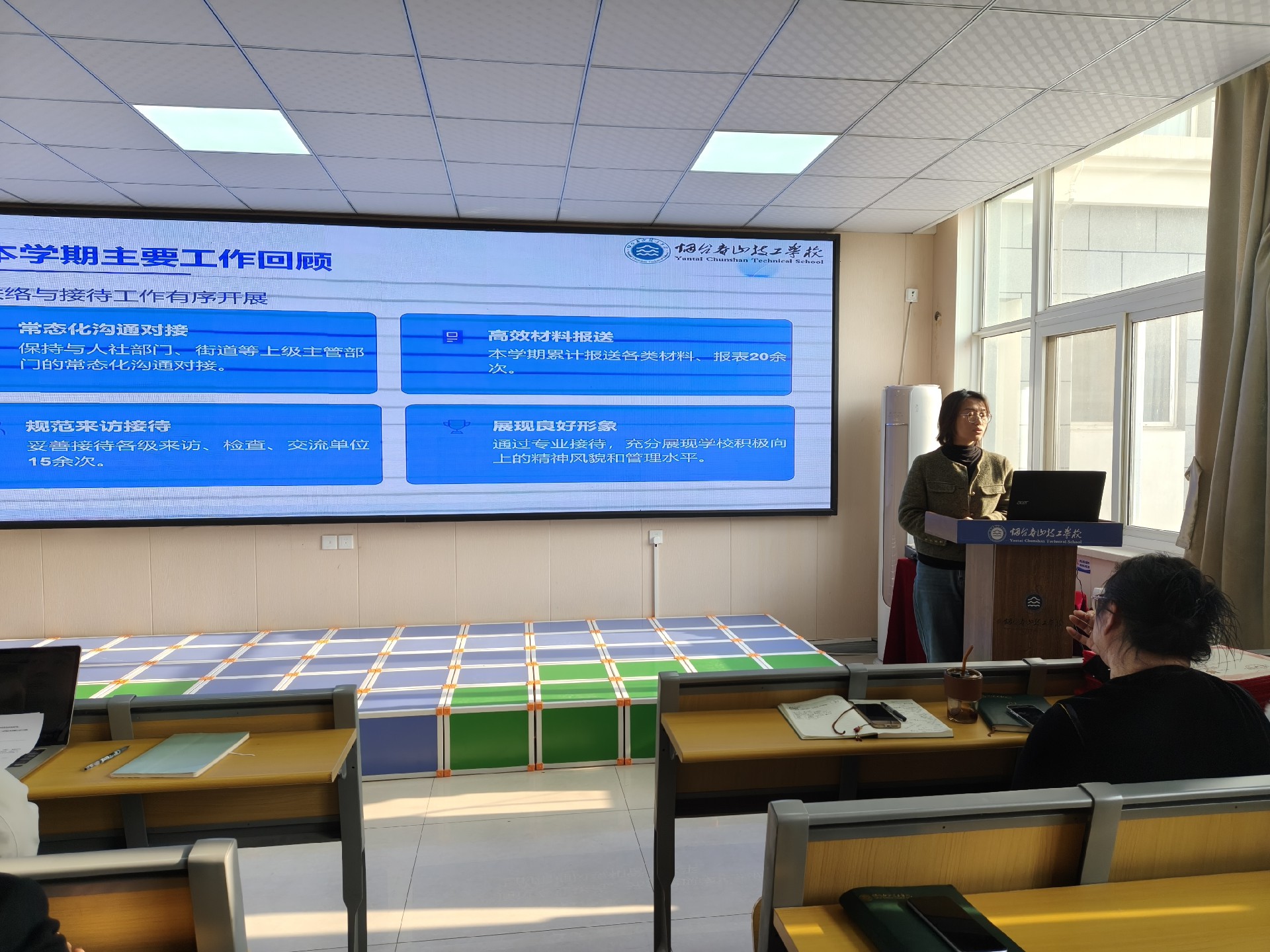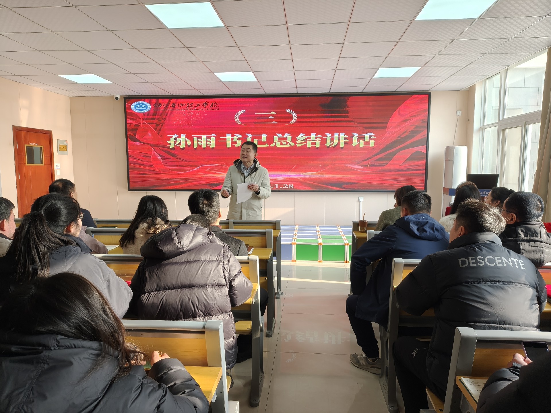 2026年1月28日,烟台春山技工学校召开2025-2026学年度第一学期全体职工大会。会议旨在总结学期工作,表彰先进典型,部署重点任务,凝聚发展共识。