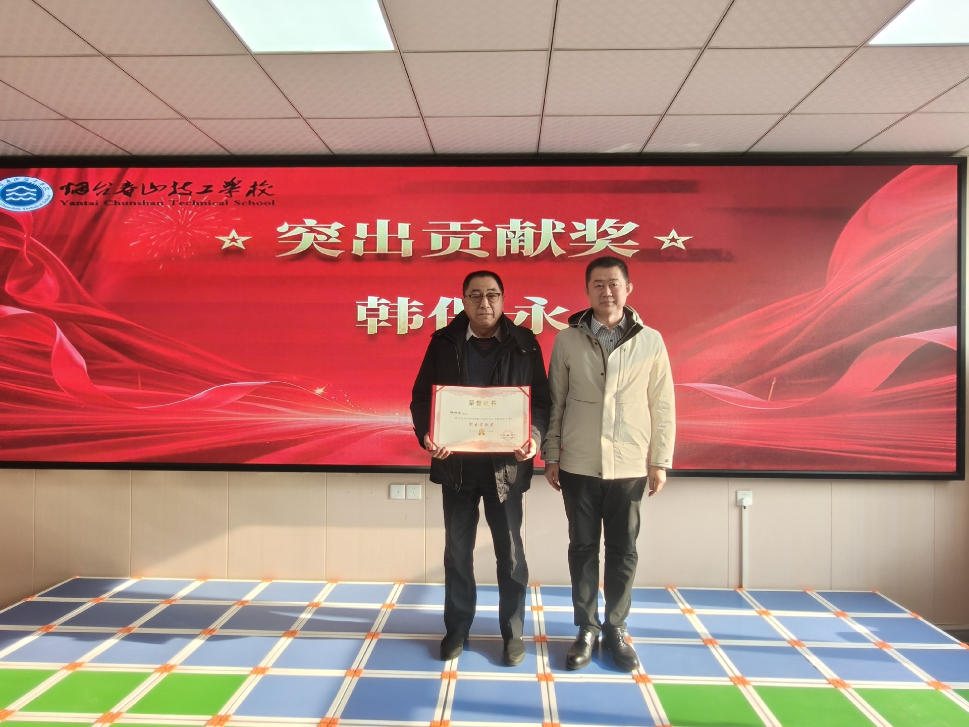 会议对过去一学期涌现出的先进典型进行了表彰。孙雨书记与梁文鹏副校长共同为荣获“骨干教师”“优秀教师”“优秀班主任”“先进工作者”称号的教职工颁奖。大会特别设置“突出贡献奖”,由孙雨书记亲自授予韩保永部长,表彰其在学校发展进程中作出的卓越贡献。