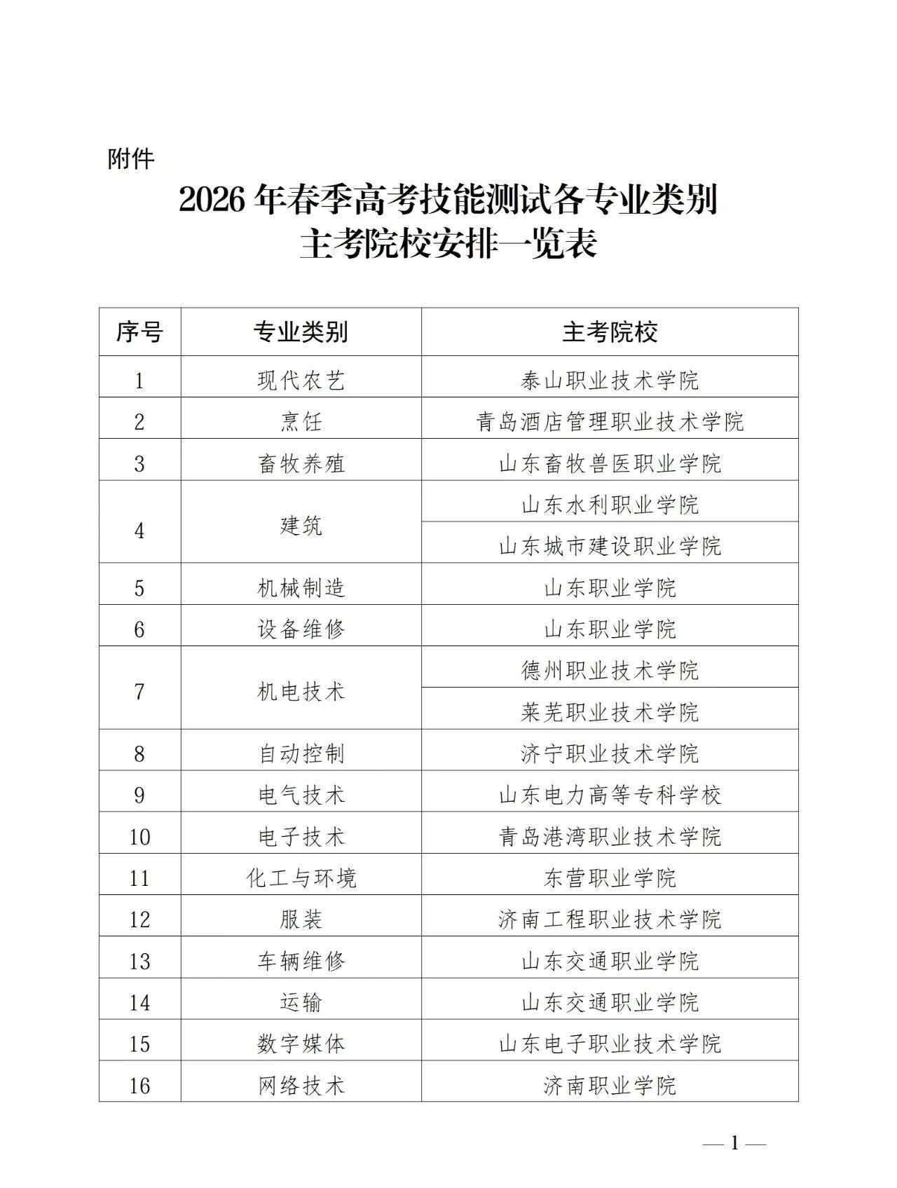 为做好我省2026年春季高考统一考试招生技能测试工作,根据有关规定,制定本实施办法。 一、考试组织 我省2026年春季高考统一考试招生技能测试(以下简称春季高考技能测试)在省教育厅领导下,由省教育招生考试院负责组织管理,委托我省部分院校(详见附件)具体组织实施。 二、考试类别 2026年春季高考技能测试按照30个专业类别(详见附件)进行,考生选择其中一类参加考试,进行一次测试,满分分值为230分。 三、考试报名 春季高考统一考试报考人员须为中等职业教育应届毕业生和社会人员,社会人员报考应取得高级中等教育学校毕业证书或具有同等学力。具体报考流程及相关政策要求按《山东省教育招生考试院关于做好山东省2026年普通高等学校招生考试报名工作的通知》(鲁招考〔2025〕105号)相关规定执行。 高职(专科)单独考试招生院校原则上不单独组织技能测试,报考高职(专科)单独考试招生的考生需参加春季高考技能测试,考试成绩由招生院校认可,确需自主组织专业技能测试的个别专业须经省教育厅批准后方可实施。 各县(市、区)教育行政部门和教育招生考试机构要加强考生报名资格全过程核查,加大各类考生学籍学历、户籍的审查力度,坚决打击报考资格造假等考试违规行为。 四、考试时间 根据教育部相关规定,2026年春季高考技能测试安排在2026年3月14日至24日进行。考生可在考试开始前4天,登录省教育招生考试院官网 (https://www.sdzk.cn/)查询并打印准考证。 五、命题组织 根据考试时间安排,2026年春季高考技能测试试题或考试范围在考前一周左右由主考院校发布。 根据考试工作要求,负责命题的主考院校要加强命题工作管理,不得将管理权限层层下放或简单委托院系承担,不得委托任何中介机构、公司或个人命题。要从相关高职院校、中职学校严格选聘政治素质好、业务水平高的命题专家,加强安全保密教育管理,严格执行回避制度,确保命题工作科学化、制度化和规范化。要强化试题命制、印制、流转、保管、施考全过程安全保密管理。 六、考试实施 各主考院校是春季高考技能测试组织实施主体,在全省统一规定的考试时间范围内,在省教育招生考试院监督指导下,根据专业特点、考生规模等情况统筹组织考试。根据实际需要,春季高考技能测试可采用笔试、机考、实际操作或笔试与实际操作相结合的方式进行。 各主考院校须成立春季高考技能测试工作领导小组,全面负责考试组织、安全保密、考风考纪、应急处置等工作,要加强考试管理,严肃考风考纪,畅通咨询渠道,维护公平公正,保障考生合法权益。 七、评卷及成绩发布 春季高考技能测试评卷、统分和成绩发布工作由各主考院校负责。主考院校要成立以学校负责人为组长的评卷工作领导小组,加强评卷人员选聘、评卷场所、评卷设备、评卷程序、安全保密、后勤保障等方面的组织管理,完善工作机制,严守评卷纪律,严格评分标准,确保评卷质量。 主考院校在各自规定的时间段内,在学校网站向考生提供成绩查询。考生对成绩如有疑问,可于成绩正式公布次日起3日内,向主考院校申请成绩复核,逾期不再受理。 八、违规行为处理 对在考试过程中发生各种违规行为的考生、考试工作人员、社会其他人员和高校,严格按照《中华人民共和国刑法修正案(九)》、《中华人民共和国教育法》、《最高人民法院、最高人民检察院关于办理组织考试作弊等刑事案件适用法律若干问题的解释》(法释〔2019〕13号)、《国家教育考试违规处理办法》(教育部令第33号)和《普通高等学校招生违规行为处理暂行办法》(教育部令第36号)等法律法规严肃处理。